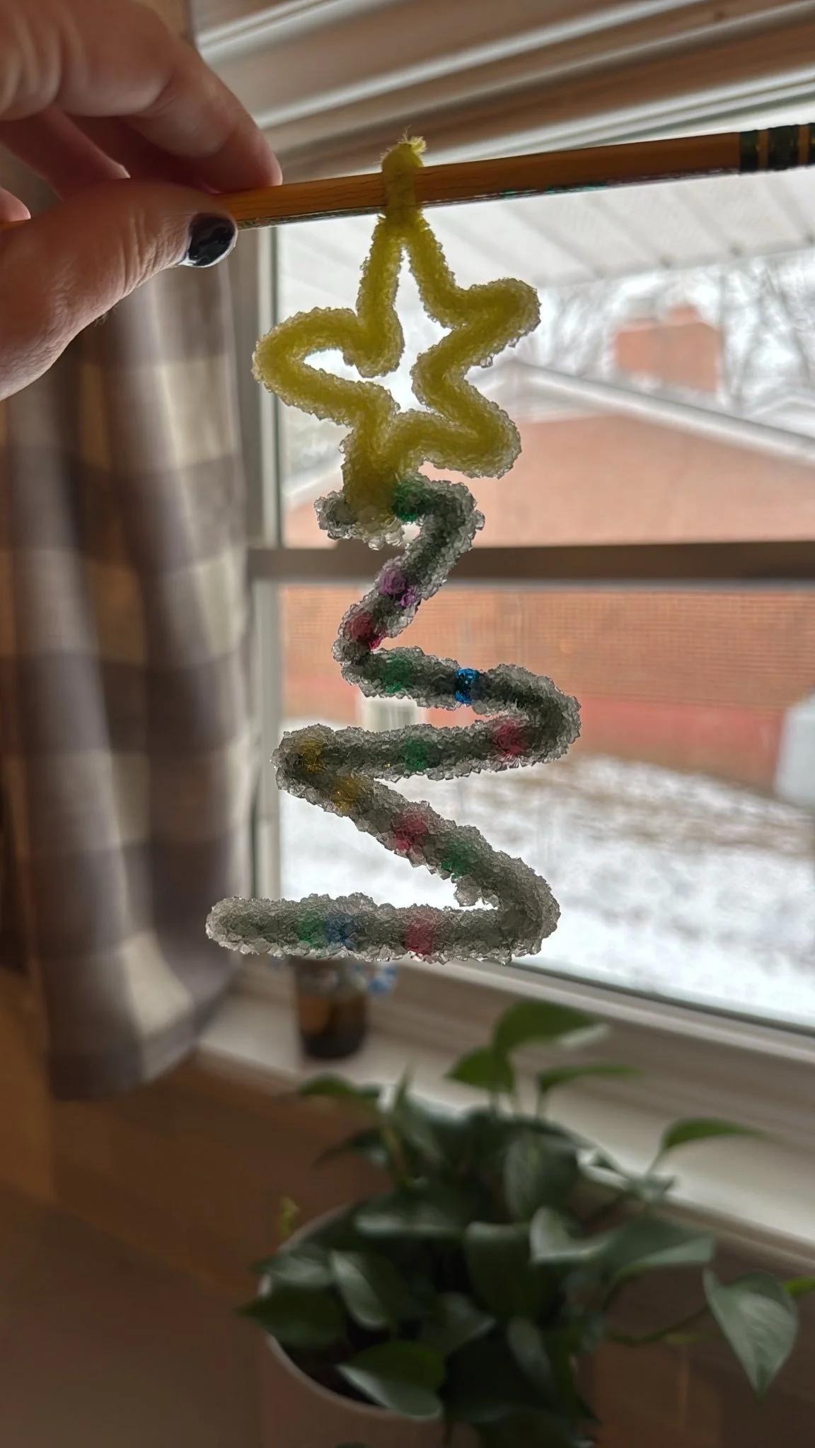The next day, observe the crystals that have formed and gently remove your ornament.